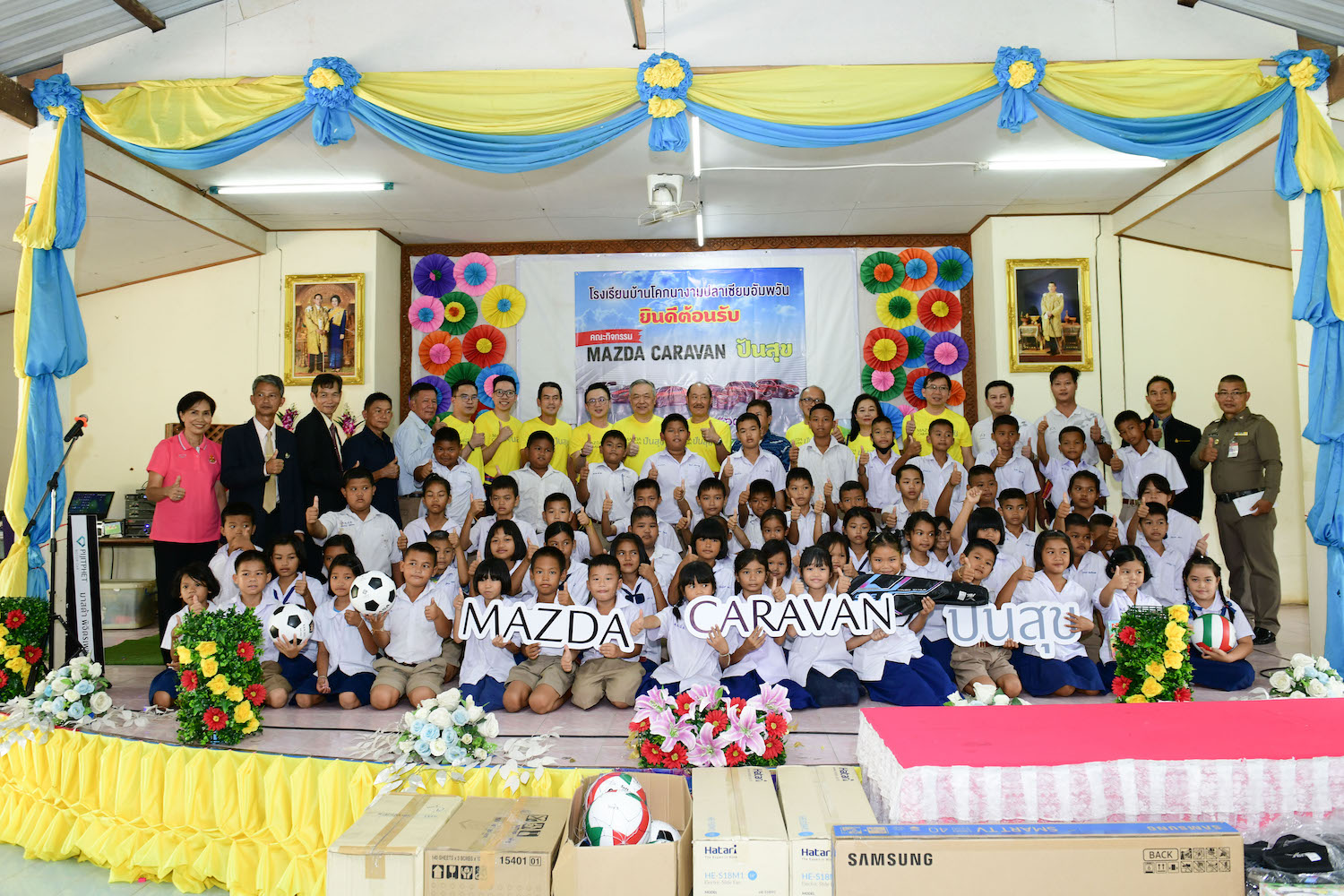 ขบวนคาราวาน “MAZDA CARAVAN ปันสุข” ออกเดินทางจากกรุงเทพฯ ไปยังผู้จำหน่ายรถยนต์มาสด้า และส่งมอบสื่อการเรียนการสอน อุปกรณ์กีฬา และทุนการศึกษา ให้แก่เด็กนักเรียนและประชาชนในจังหวัดต่างๆ ทั้ง 4 ภูมิภาคด้วยกัน โดยเริ่มจากจังหวัดจันทบุรี เป็นที่แรก และตามมาด้วยจังหวัดขอนแก่น ซึ่งถัดไปคือจังหวัดเชียงใหม่ และทริปสุดท้ายคือจังหวัดกระบี่และอำเภอหาดใหญ่ ตามลำดับ โดยเริ่มแบ่งปันความสุขมาตั้งแต่วันที่ 27 สิงหาคม 2563 และต่อเนื่องไปตลอดเดือนกันยายน นับเป็นอีกหนึ่งโครงการที่เป็นแรงผลักดัน และสร้างสังคมไทยให้เป็นสังคมแห่งความยั่งยืน ซึ่งสอดคล้องต่อแนวคิดในการทำงานของมาสด้า เพื่อให้โลกของเรายังคงสวยงาม เพื่อให้ผู้คนมีคุณภาพชีวิตที่ดี และเพื่อสร้างสังคมที่ยั่งยืนตลอดไป