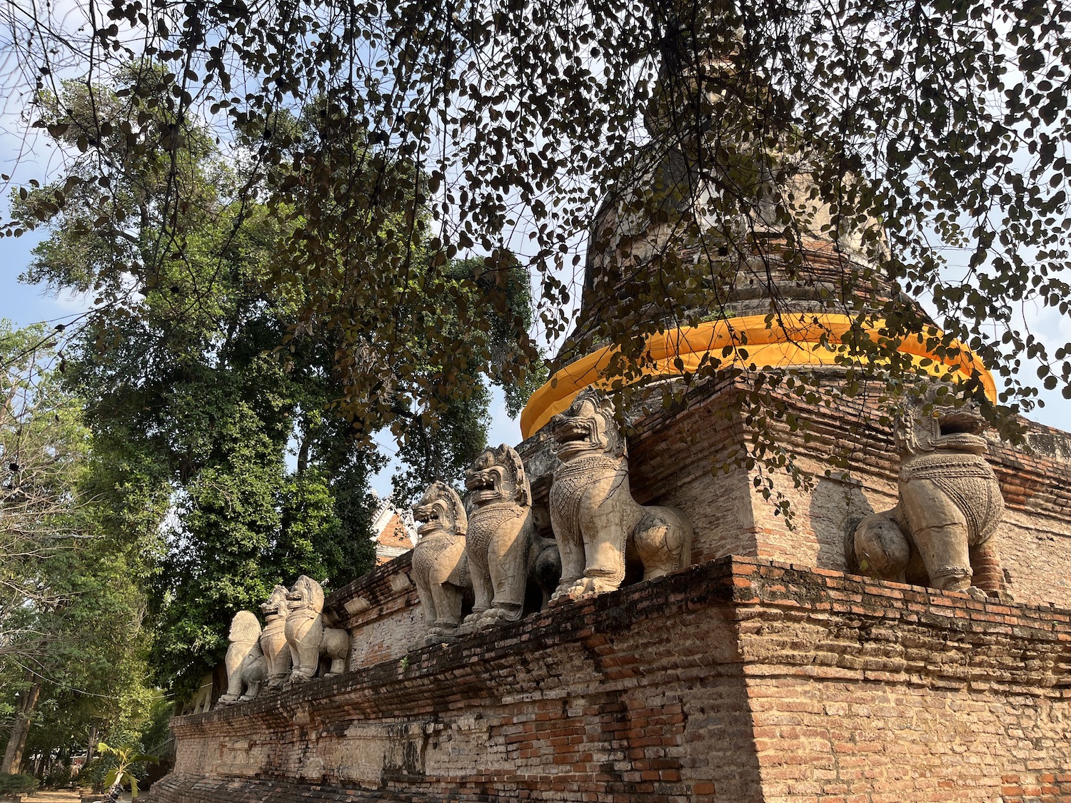 วัดแม่นางปลื้ม : รูปแบบสันนิษฐาน เจดีย์ประธานมีรูปสิงห์ล้อม คือ รูปแบบในพุทธศตวรรษที่ 20 อันเป็นศตวรรษแรกของราชธานีกรุงศรีอยุธยา แต่อาคารหลังคาคลุมได้แก่อุโบสถ และวิหารสร้างขึ้นใหม่ ในรัชสมัยพระบาทสมเด็จพระจอมเกล้าเจ้าอยู่หัว (พ.ศ.2394-2411)